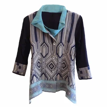 Three years ago, she and her best friend opened their own clothing business called Be One of a Kind. Deborah and Jacqi designed and sewed one of a kind scarves, knit tops, and jackets. Their unique styling consisted of piecing various printed fabrics together and joining them with serged outside seams. The line was successful and sold in boutiques throughout the country. After two years they decided it was time to grow the business or to try something new. Jacqi is now a petroleum engineer and Deborah still enjoys creating one of a kind clothing.