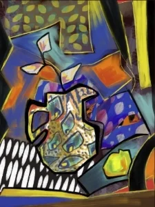 Each print was created using the Procreate iPad drawing app. Original photographs were manipulated using Moku, Filterstorm, and Superimpose apps. Drawn images were juxtaposed with photos creating lively montages of color and pattern.