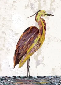 For my latest project, I use photographs of flowers and leaves and incorporate them with drawing. The idea germinated last fall when the colors and patterns of the leaves were speaking to me. I loved photographing them but wanted to do something more to show them off. I begin by removing the background of each photo using the Procreate app on my iPad. Then I layer them following the shape of my drawing. The heron is one of my favorite birds and was the perfect shape for the layering of over 40 leaves.